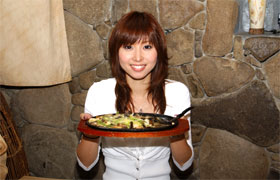 ●豆腐とチーズのプレート焼 宴会のお料理として出しているという一品♪香織がいただいたのは天然しめじと玉ねぎ、小ネギなどが入ったものでした。とろーりチーズとの相性グッド!!季節の旬のものが入ります!